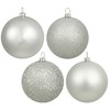 Vickerman 4-Finish Assorted Plastic Ornament Set & Seamless Shatterproof Christmas Ball Ornaments with Drilled Cap, Assorted 4 per Bag, 6", Silver
