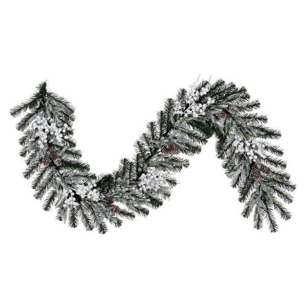 Vickerman 6' x 14" Frosted Berry Mixed Pine Cone Artificial Unlit Garland.