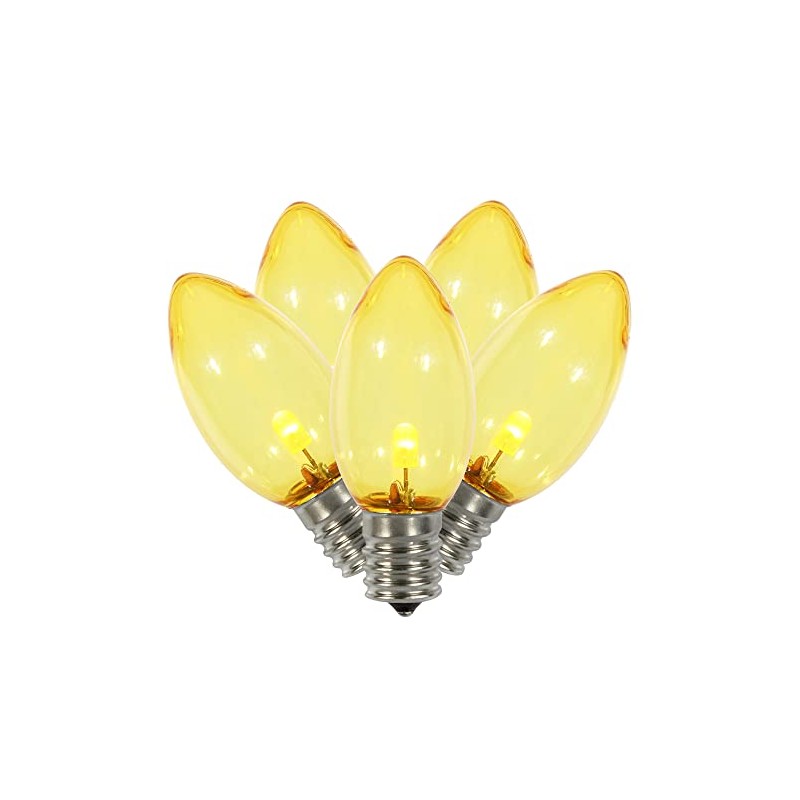 Vickerman C9 Transparent Plastic LED Yellow Dimmable Bulb, E17 Nickel Base, 3 Diodes, .90Watts, 120Volts, .9 Lumens, 25 per Case