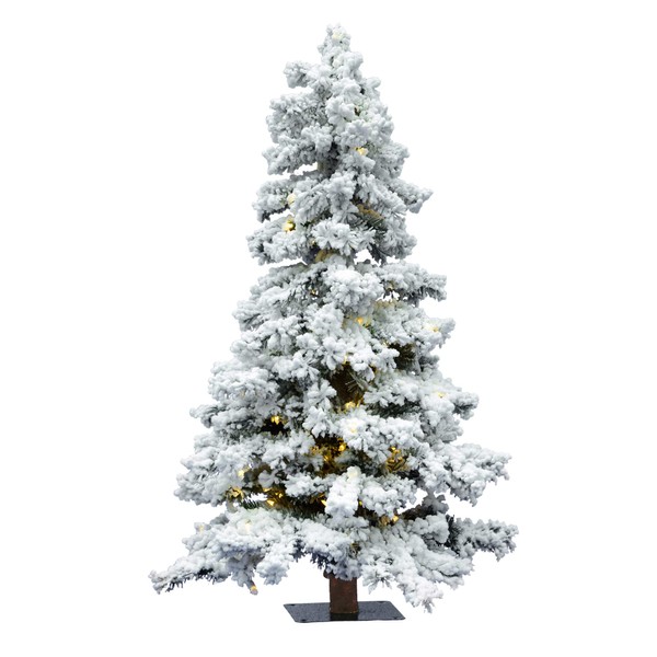 Vickerman 5' Flocked Spruce Artificial Christmas Tree with 478 PVC Tips and 250 Warm White Dura-Lit LED Lights. This tree features Dura-Lit LED Lights, metal hinged branches, and a Metal Tree Stand is included. It has dura-lit energy efficient LED light