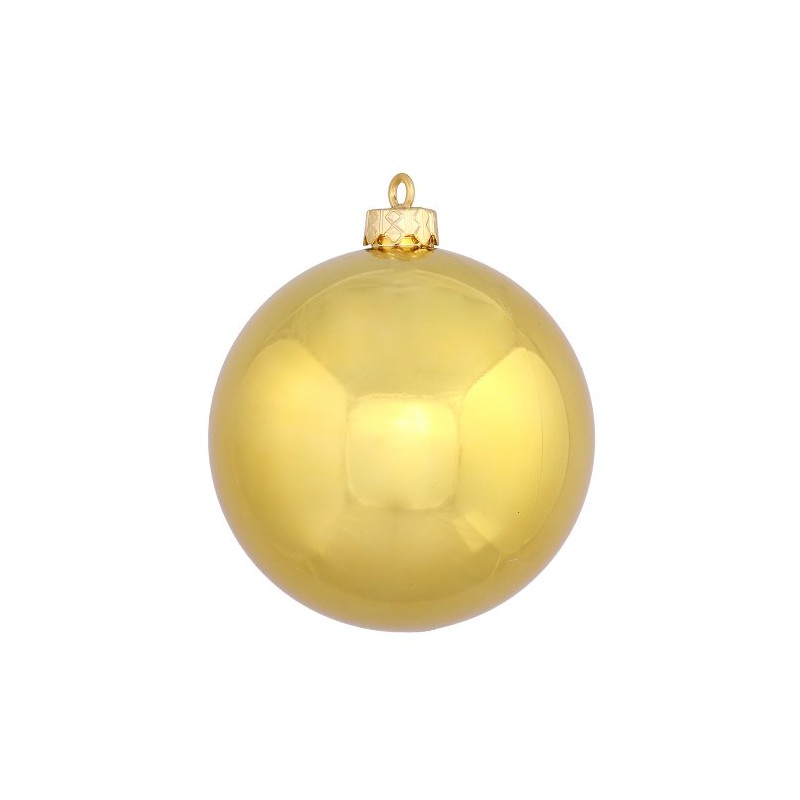 Vickerman Shiny Finish Seamless Shatterproof Christmas Ball Ornament, UV Resistant with Drilled Cap, 4 per Bag, 4.75", Gold