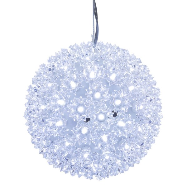 Vickerman 6 inch starlight sphere Christmas ornament with cool white wide angle LED lights 50 cool white LED starlight lights utilizes energy-efficient, durable LED technology utilizes energy-efficient, durable LED technology