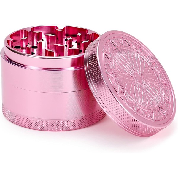VICKYDGE 2.5 Inch Grinder - Large Kitchen Grinder with Exquisite Pattern, Pink