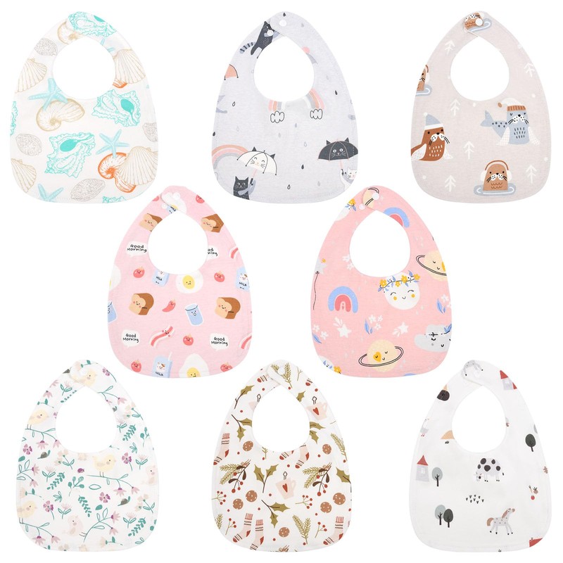 You will receive 8 pieces of newborn bibs in various patterns, enough for your baby's daily use.