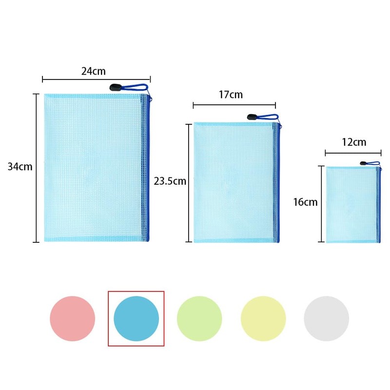 - Briefcase with zip: 5 colours (pink, yellow, white, blue, green), multiple sizes, buy on request, A3 (43 cm x 30.5 cm), A4 (34 cm x 24 cm), A5 (23.5 cm x 17 cm), A6 (12 cm x 16 cm), B4 (39 cm x 28 cm), B5 29 cm * 21 cm)