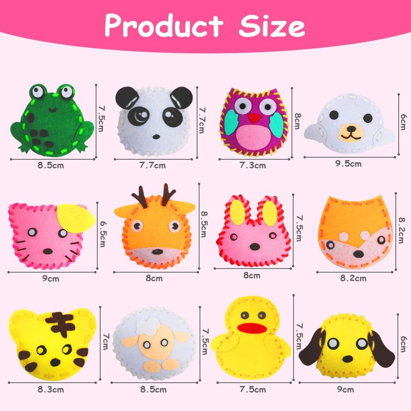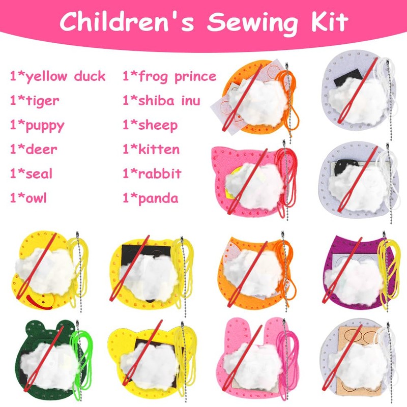 - 【Great Value Set】The children's sewing kit includes 12 different cute cartoon animal images, and kids can sew a variety of keychains according to they preferences, and is equipped with sufficient felt fabrics, colored sewing threads, filling cotton, etc., which can greatly meet children's sewing needs.