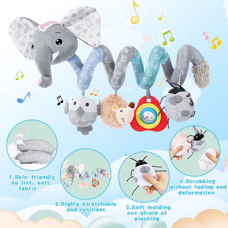- 👶【Multifunctional】: Spiral stroller toys are perfect for entertaining at home or on the go. Stroller Seat Stroller toys can be wrapped around a stroller bar or car seat handle and can be placed in a variety of other places, cribs, travel or elsewhere.