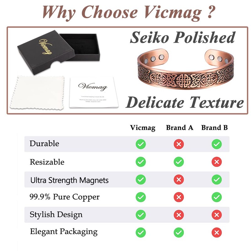 - ✨ Stylish Copper Bangle ✨ The oldest and most popular Celtic symbols, which is very generous, practical, beautiful. inspired by ancient simple, but there is no lack of modern fashion sense. It's so stylish that nobody would suspect it's a copper magnetic bracelet.