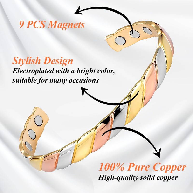 - 💯 99.99% Pure Copper Bracelet 💯 Copper Bracelet for Women, made with high-quality pure copper. LEAD & NICKEL FREE. Comfortable and durable, top techniques, Scratches Resistant. This copper magnetic bracelet have an elegant plated (PVD) finish and you won’t have to worry about tarnishing!