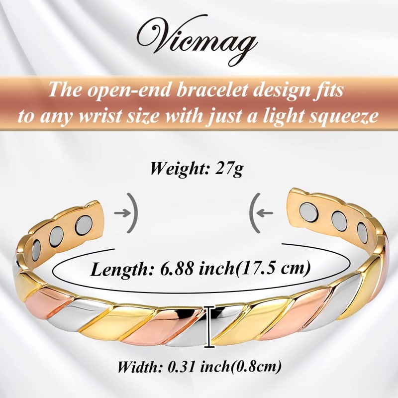 Vicmag Copper Bracelet for Women Magnetic Bracelet 9X Ultra Strength Magnets 99.99% Solid Pure Copper Adjustable Size with Gift Box (Tricolour Diamond)