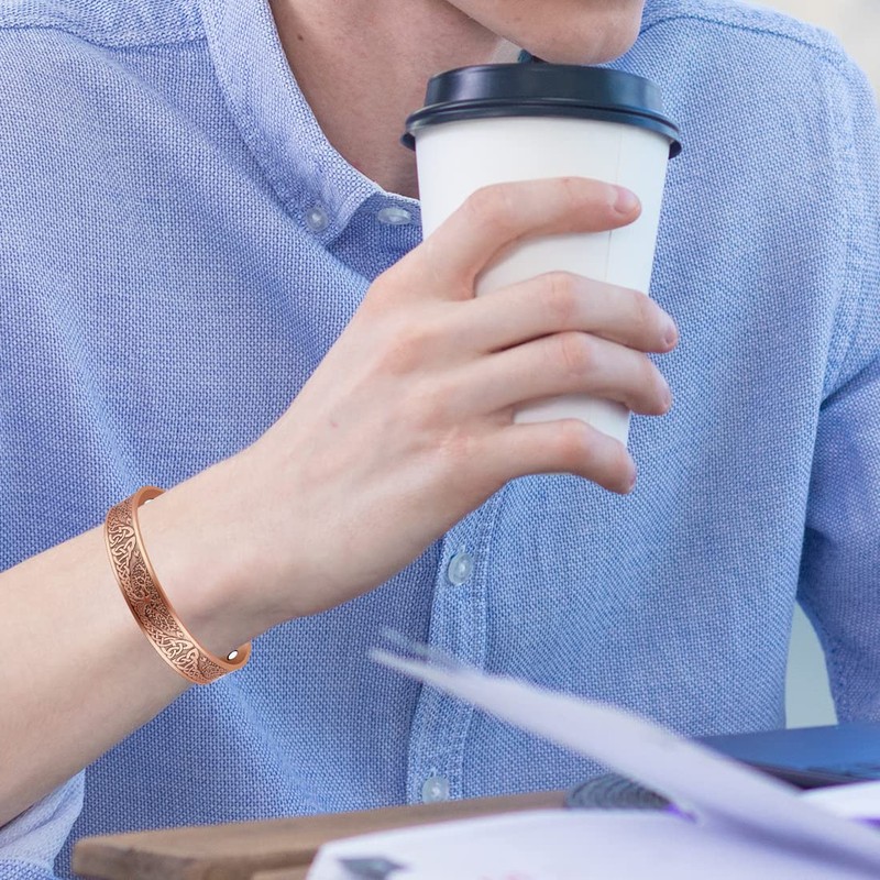 - ✨ Stylish Copper Bangle ✨ Viking Pattern design bangle, the oldest and most popular Celtic symbols, which is very generous, practical, beautiful. Inspired by ancient simple, but there is no lack of modern fashion sense. It's so stylish that nobody would suspect it's a copper magnetic bracelets.