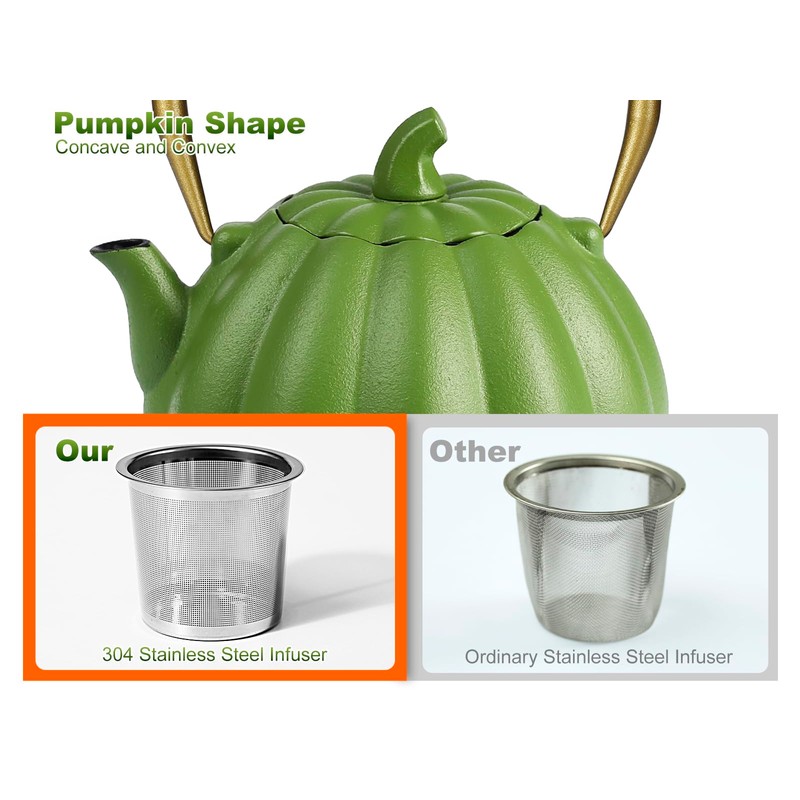 - Ancient Casting Craft: The pumpkin teapot adopts an ancient casting process, compared to traditional cast iron teapots, we use a thicker iron layer, and use a full enamel coating, which makes it stronger and safer!