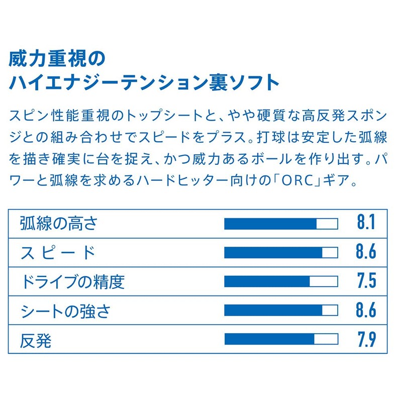 When designing the Ventus Stiff, the Japanese rubber experts focused on perfect balance between high speed, maximum spin development and great control. The open-pore 45 sponge of Ventus Stiff features the Optimized Rotation Concept and is truly made for spin. Thanks the sponge design, this development guarantees longer ball contact which results in more rotational energy transfer on the ball. In addition, the higher trajectory resulting from the Optimized Rotation Concept provides for great feel and more control in your play. The fast performance top rubber sheet of Ventus Stiff develops tons of power and tremendous drive both for aggressive opening loops and mid-distance topspin attacks. Ventus Stiff is a highly balanced offensive rubber offering great value for money.