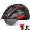 VICTGOAL Bicycle Helmet MTB Helmet with Removable Magnetic Safety Goggles Visor, Breathable with 21 Ventilation Channels, Cycling Helmet, Adjustable Bicycle Helmets (L: 57–61 cm, Black / Red)