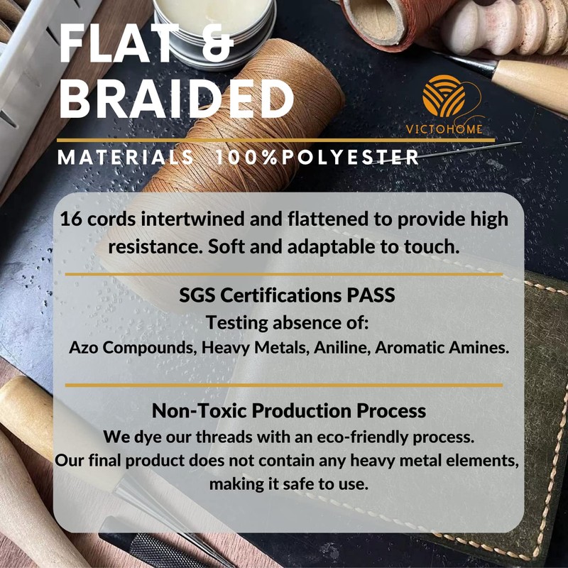Victohome 100% Polyester Flat Waxed Threads, 150D/0.8mm, 270Yards/247m. All-P...