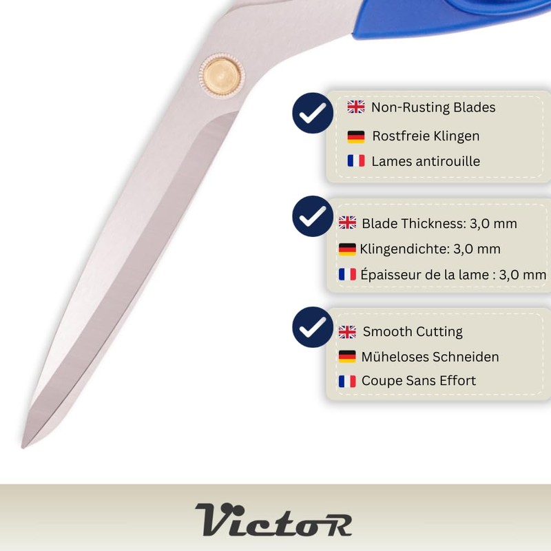 Victor Fabric Scissors in Blue Approx. 23 cm Long Scissors for Cutting Fabric, Crafts and Sewing