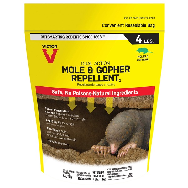 • Effectively repels moles, gophers, voles, armadillos and other burrowing animals with a tunnel penetrating formula