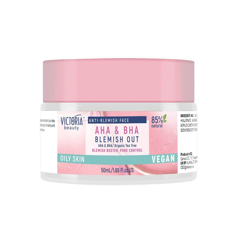 Victoria Beauty - AHA BHA Face Cream, Anti Pimple Cream with Tea Tree Oil for Blemished and Oily Skin, Vegan Natural Highly Effective Formula (1 x 50 ml)