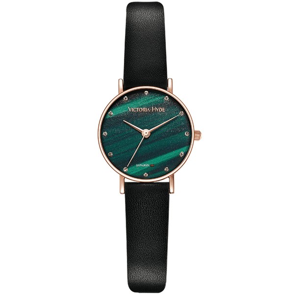 VICTORIA HYDE Retro Ladies Watches Small Dial Analog Quartz Detachable Genuine Leather Strap Wristwatch (Green-Black)