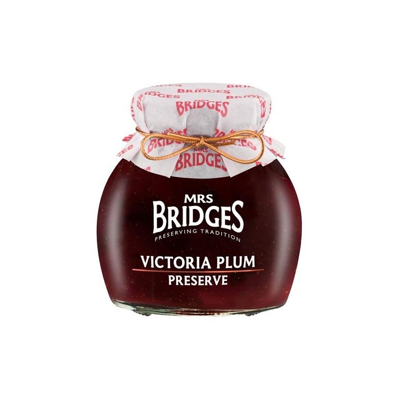 - Ingredients: Sugar, Victoria Plums, Gelling Agent: Fruit Pectin, Acidity Regulator: Citric Acid. Prepared with 45g of fruit per 100g. Total sugar content 65g per 100g