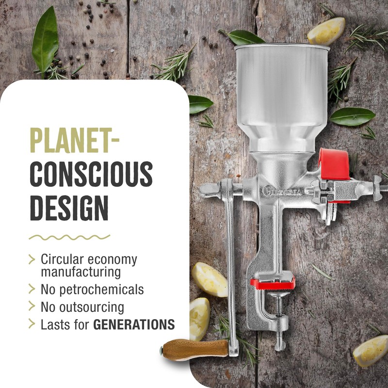 - CAST IRON GRINDER: Designed to make grinding a breeze, the Victoria Grain Grinder features a spacious hopper and double-tin plating to resist stains and corrosion. This combination allows efficient grinding of various grains, resulting in ground ingredients perfect for a variety of recipes.