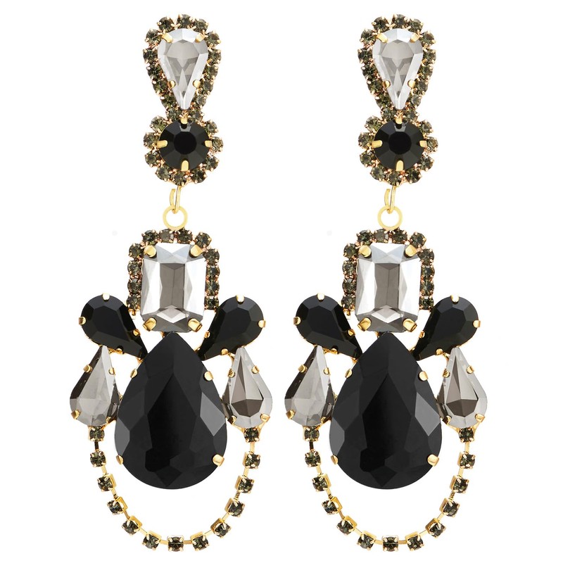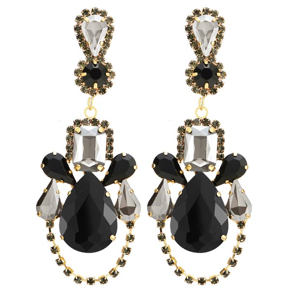 - Victorian Large Statement Earrings Black Rhinestone Crystal Teardrop Floral Dangle Drop Earrings