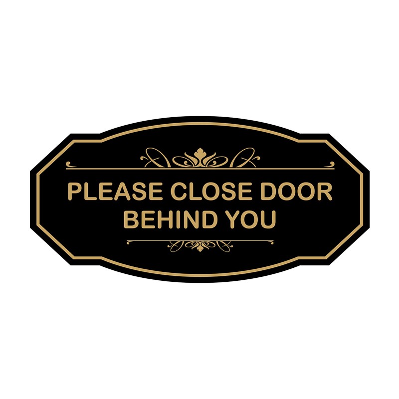Victorian Please Close Door Behind You Sign (Black Gold) - Medium