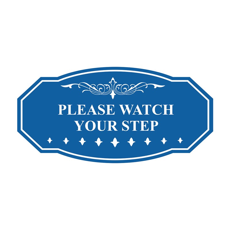 Victorian Please Watch Your Step Sign (Blue) - Medium 2 Pack
