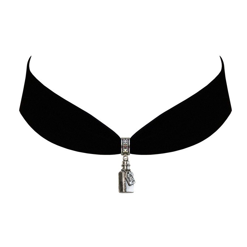 - Beautiful Fine Quality Jet Black Velvet Choker with Bottle Charm