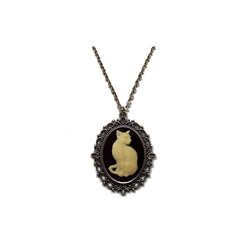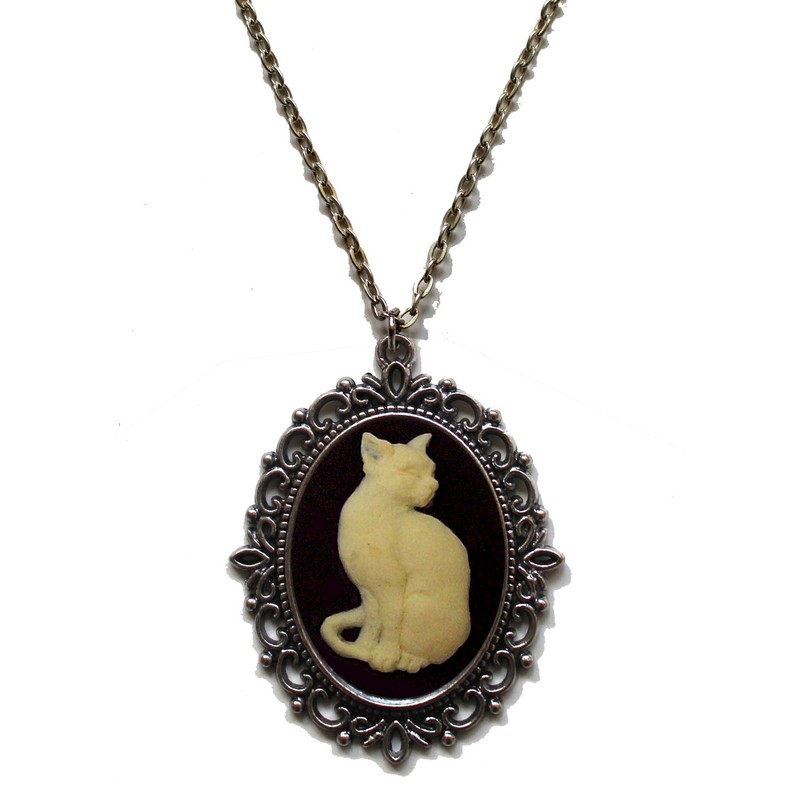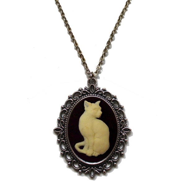 Victorian Vault Cat Cameo Steampunk Gothic Pendant Necklace on Chain