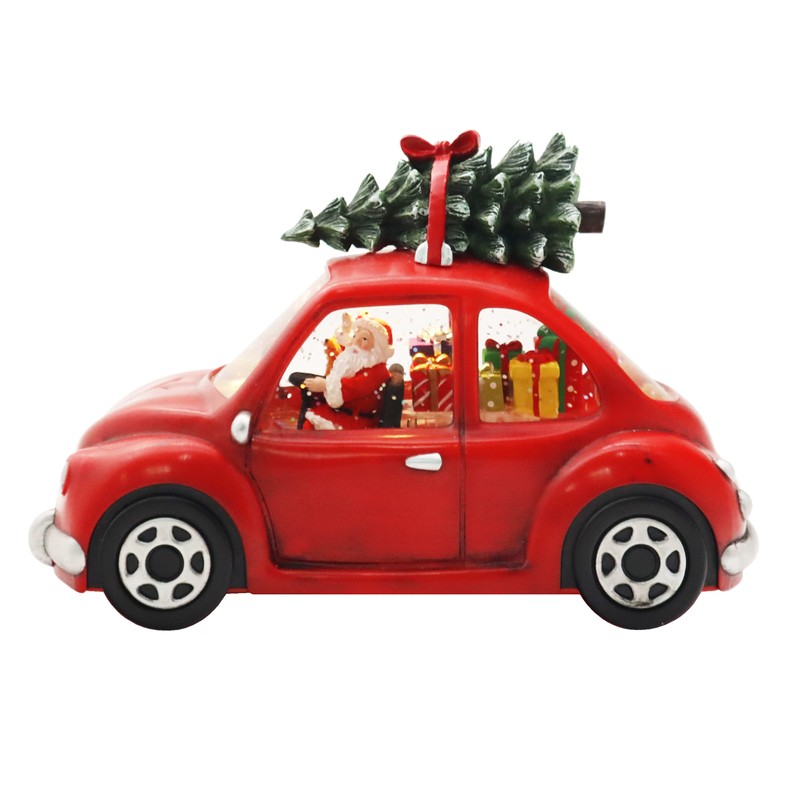 Victory Creative Christmas Holiday Illumination Santa in Car Musical Snow Globe 8"x5" Glitter Spinner Battery Operated Timer & USB Light Up Xmas Snow Globe Home Decor