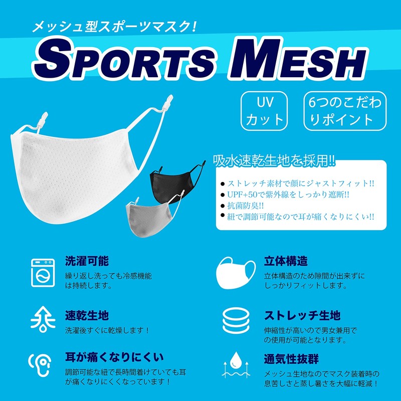 - (2-layer mesh fabric that is easy to breathe) The two-layer construction uses mesh fabric to reduce discomfort such as sweat and stuffiness, and reduces breathing difficult. The mesh fabric on the part that touches the skin is not only stuffy, but it also feels good on the skin, so it can be used by people with Breathable for easy conversation when wearing a mask and provides stress-free communication