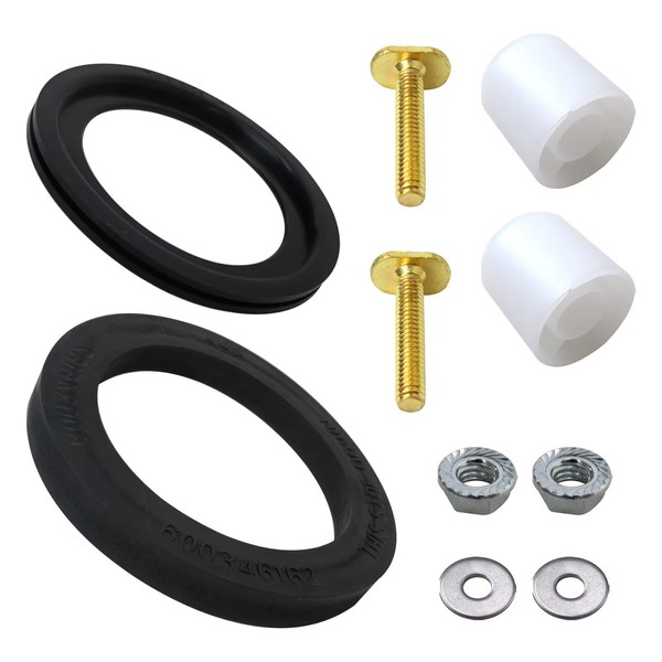 • Material: This toilet seal kit is made of premium rubber compound, which ensures that the gasket will not deform or even crack due to long-term aging. Screws made of brass rather than copper plated, as well as stainless steel nuts and washers are made to keep rust free