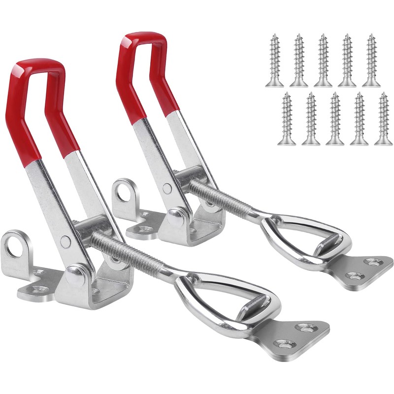 • WIDELY USED: Vicuna R heavy duty toggle latch perfectly fits the freezer door, cabinet doors, garbage cans, table leaf, storage box, tool boxes, cases, smoker lid, sliding doors, trailer tailgates, etc. Our clamps are a great helper for you in making jigs, tool fixtures, work fixing, connecting moving parts, and tensioning two sections.