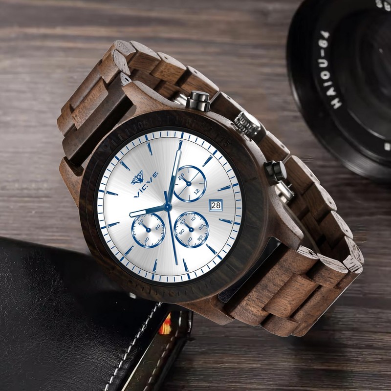 - The VICVS wooden wrist watch is equipped with premium Japanese quartz movement providing