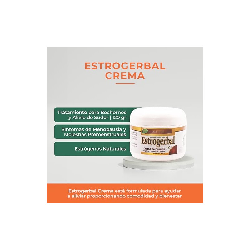 VIDA HERBAL Crema Estrogerbal de camote, Antiestres, Desinflamatoria, Menopausia, Frasco de 120g, EGC, VIDA HERBAL