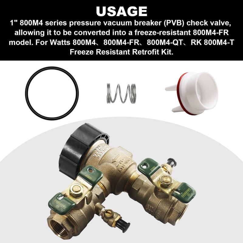 - 【Perfect Replacement】1 inch Pressure Vacuum Break Valve Exhaust Float Kit includes Exhaust Float Repair Kit, Stainless Steel Spring, Rubber Sealing Ring. Suitable for 1 inch USA Watts 800QT return valve and 1 inch PVB inlet and outlet pipes.