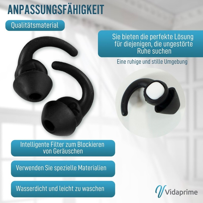 Vidaprime Ear Plugs for Sleeping - Noise Reducing, Comfortable Ear Plugs for Rest and Deep Sleep - Pack of 2 Earplugs for Sleeping and Snoring with Noise Cancellation.