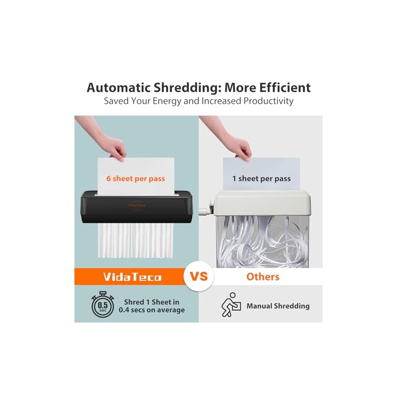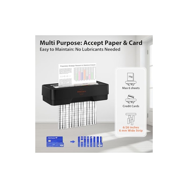 VidaTeco Shredder for Home Use,VidaTeco 6-Sheet Strip Cut Paper Shredder,Also Shred Card/Staple,Small Mini Document Shredding Machine for Office with Patented Jam Proof,Portable for Home,2.65-Gal Bin