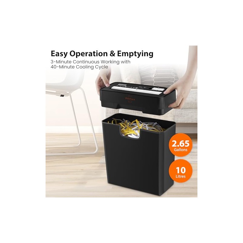 - Easy Emptying: This small document shredder comes with 2.65-gallon basket that offer less frequent and easy emptying. Special design helps to see when it is full