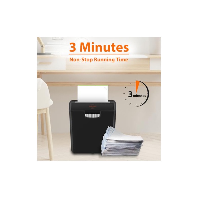 - 3-Min Running with Overheat Protection: For safety concern, if this paper shredder keeps shredding over its maximum 3 minutes continuous working time, it will be overheated and stop working. After 40 minutes cooling cycle, it can work normally. Also equipped with overheat indicator
