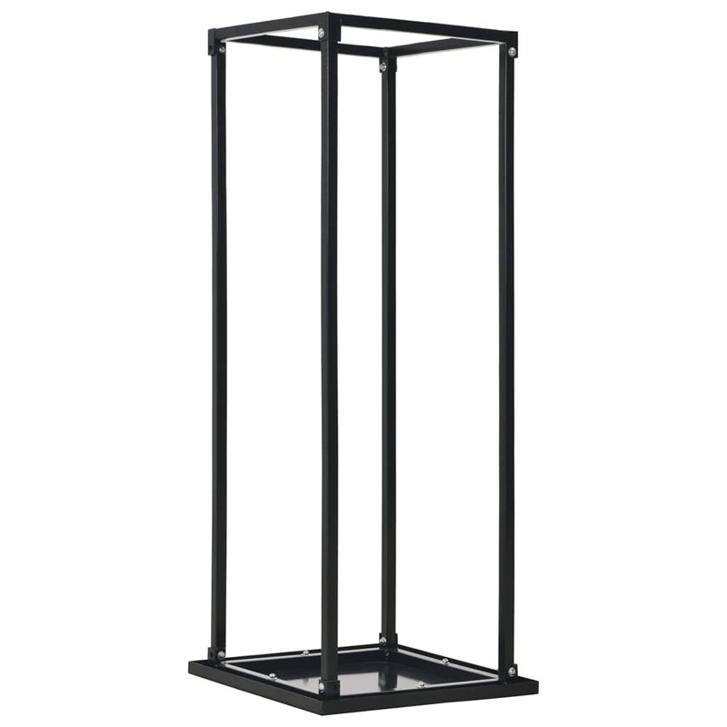 vidaXL Firewood Rack with Base Home Garden Outdoor Fireplace Wood Stove Accessory Organizer Stacker Log Holder Carrier Stand Black Steel
