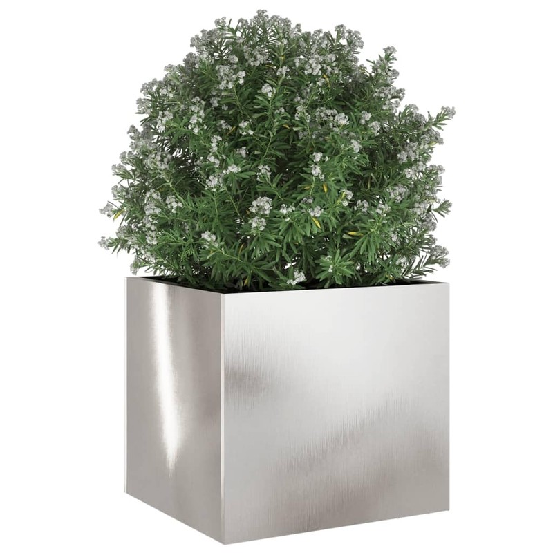 vidaXL Stainless Steel Planter 12.6"x11.8"x11.4" - Durable, Silver Rectangular Plant Container for Garden/Patio/Balcony, Easy to Clean, Assembly Required