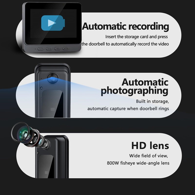 - AUTO RECORDING AND SNAPSHOT: This doorbell provides automatic video recording of visitors and snapshot features, providing users with a backup and option for added security.
