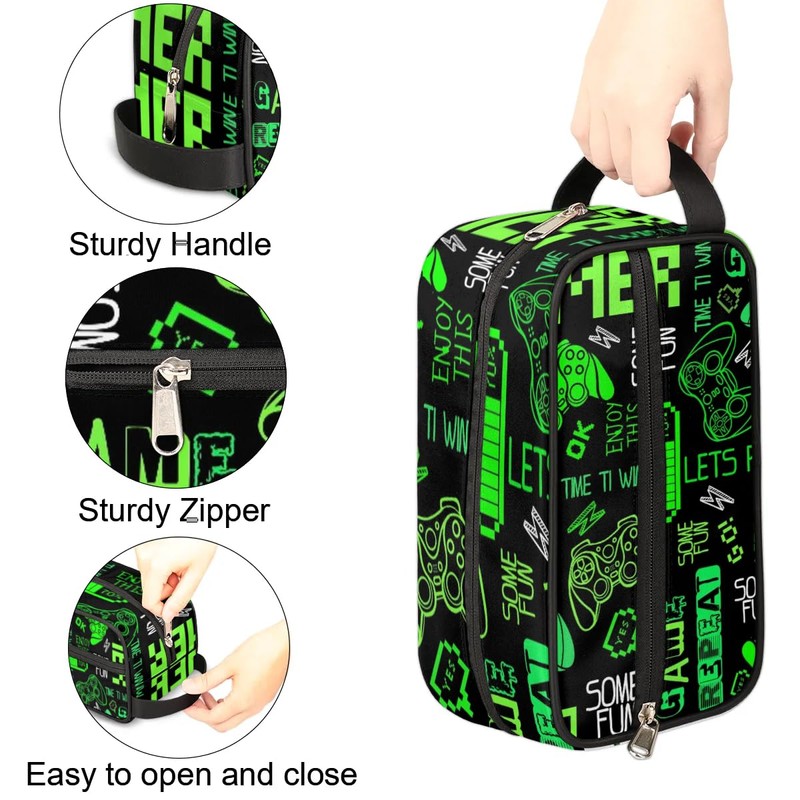 Video Game Bright Green Toiletry Bag for Boys Men, Travel Toiletry Bag for Woman Cosmetic Makeup Bag, Game Pattern Graffiti Waterproof Shaving Bag for Toiletries Accessories Travel Essentials