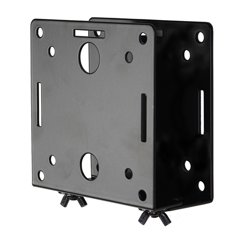 This versatile holder offers an easy method for mount your TV box, AV components, computers, and video game consoles. Hide them behind your TV for a clean TV wall mount installation. The universal design adapts to the dimensions of the box, while its mounting interface attaches to a variety of surfaces: a VESA plate, directly to a desk, clamped to a pole or fastened to Wall Track. Rubber bumpers inside the bracket gently cradle the device yet allow space for ventilation. Securely clamps provides ease of access to ports and faceplate