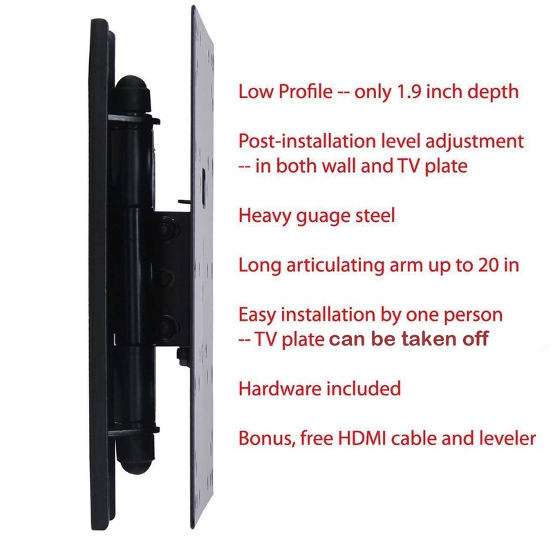 - Standard mounting hardware, Magnetic Bubble Level and bonus 10ft HDMI cable included