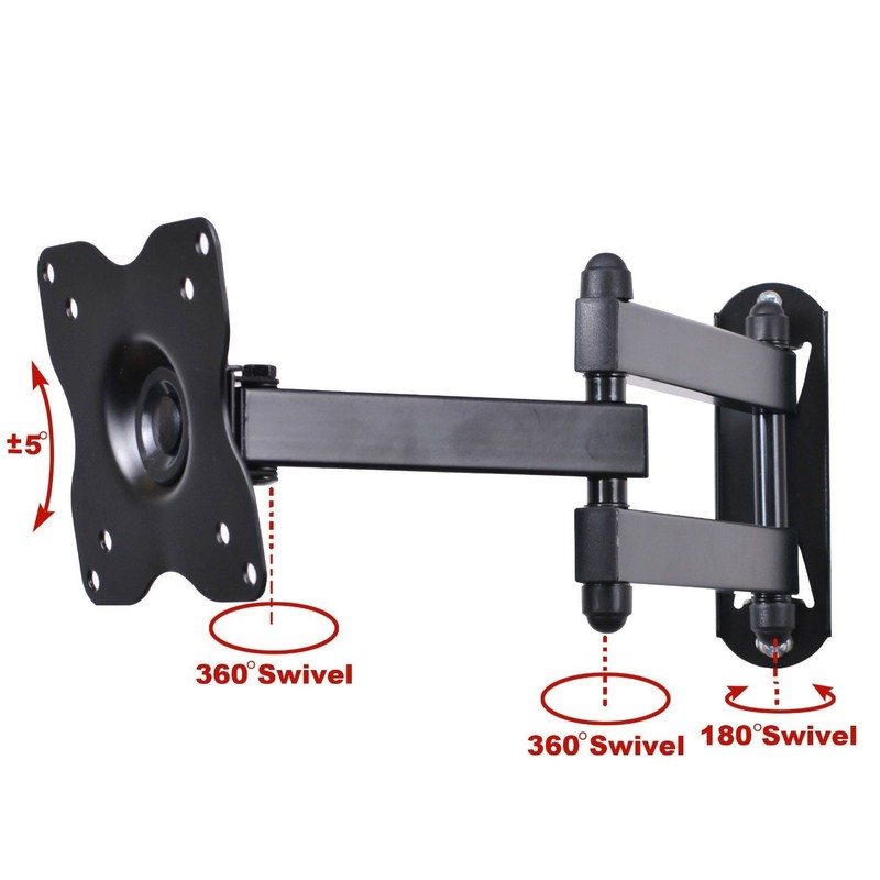 - Adjustable +/-5 degree tilt, 180 degree swivel, 360 degrees rotate. Retracts to 2.4"save space, extends up to 15" from the wall