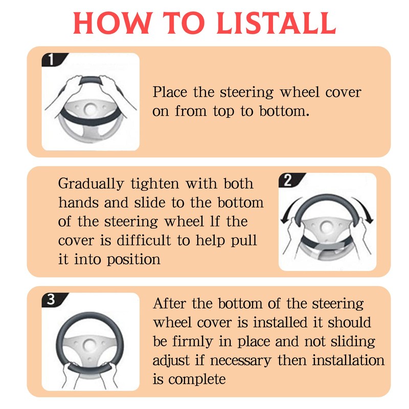1️⃣Put the steering wheel cover on the top of steering wheel.