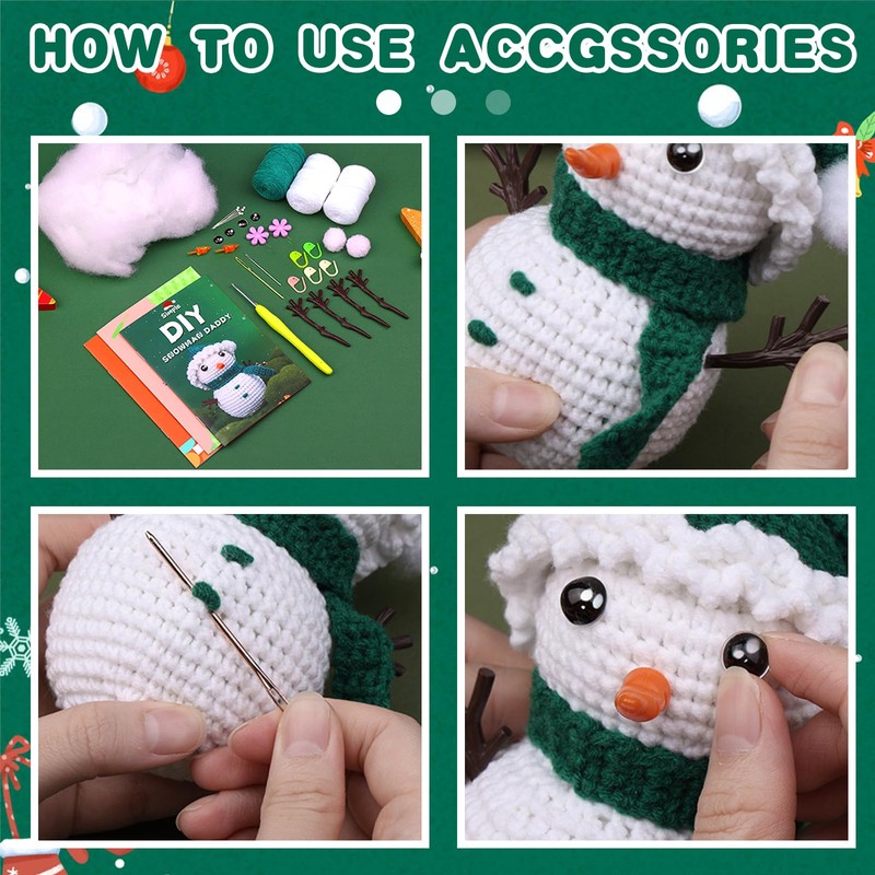 - 🎄【Creative Christmas Gift Choice】The crochet starter kit is a great gift for handicrafts knitting DIY lover or beginner. The cute Snowman decoration is great Christmas gift to bring good luck to friends and families. Its lovely appearance is also popular with kids, it is also a perfect gift choice for children.